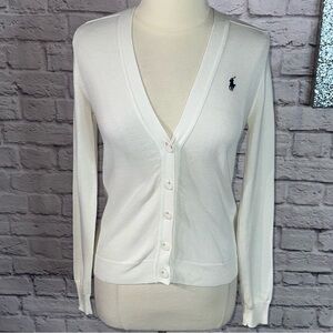 Ralph Lauren Sport Classic White V Neck Button Front Cotton Cardigan Sweater M