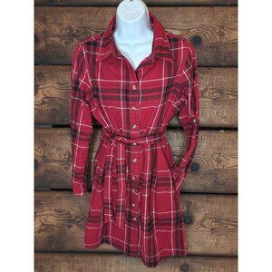 Stillwater Supply Co. Red Plaid Button-Down Belted Shirt Dress M Cotton Blend Wo