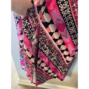 Cato Womens Size 18 Maxi Dress Pink Geometric Chevron Print Short Sleeve Stretch
