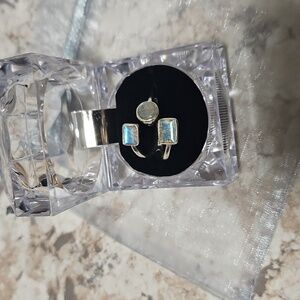Flashy bypass sterling silver labradorite ring that is adjustable with care. It will fit up to an 8 I believe. The tighter the stones are together makes it smaller and widening the stones makes it fit a larger finger. Sent ready for gift-giving.