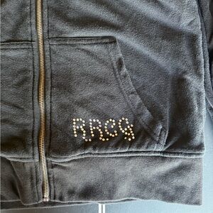 Stylish black hoodie with red and silver heart design. Features zip-up front and cozy hood. Perfect for casual wear. It’s lined, soft and very warm. Size large