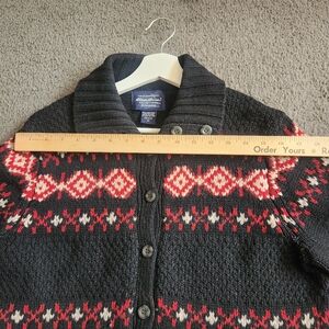 EDDIE BAUER Women's Cardigan Petite Medium Black 100% Lambswool VTG 90s Sweater