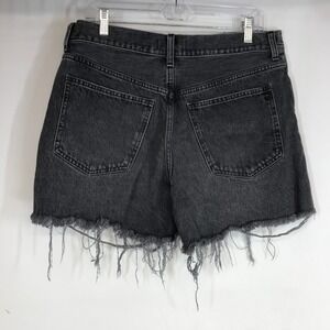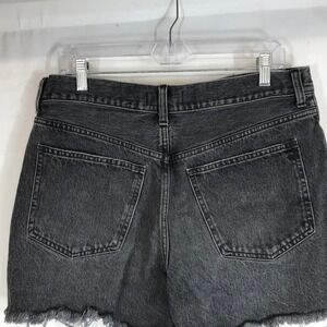 Madewell Relaxed Mid Length Denim Shorts Black Distressed Raw Hem Size 29