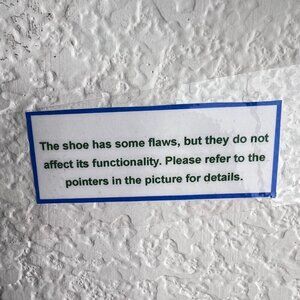 That Shoe has some flaws, but they do not affect its functionality. Please refer to the pointers in the picture for details.