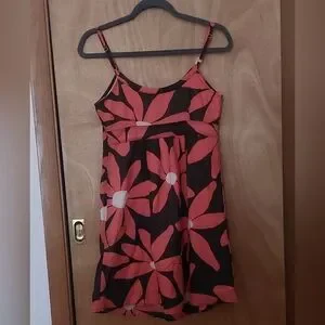 VERY PRETTY floral dress from Boden. Peachy-red and cream colored flowers with a black background. Mini-length. Fully lined. Women's Size 4.