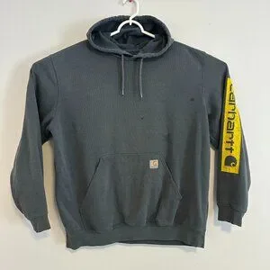Carhartt Hoodie Sweatshirt Mens XL Gray Yellow Distressed Grunge Long Sleeve