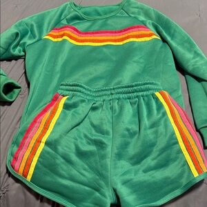 Stay stylish and comfortable with this green track set featuring vibrant red and yellow stripes. Perfect for casual outings or workouts.