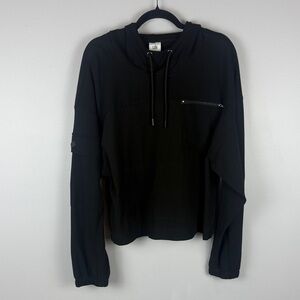 CAbi Black Quantum Hooded Cropped Pullover Sweatshirt Size XL