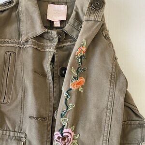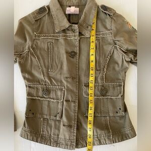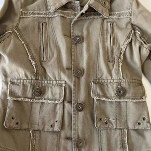 Romeo & Juliet Couture Khaki Embroidered Jean Jacket 100% Cotton metal buttons