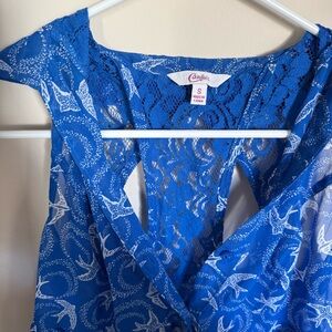 Women’s Candie’s Semi Sheer Blue Beachy Summer Seagull Bird Print Sz S Tank Top