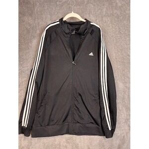 Adidas Mens Track Jacket Full Zip Black White 3 Stripe Logo Size 2XL