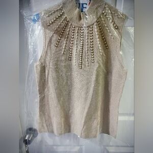 Stylish beige tank top with intricate bead detailing. Perfect for versatile wear. Like new, dry cleaned
