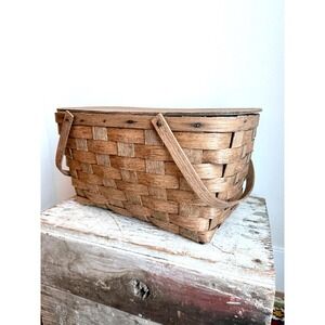Antique Primitive Split Oak Handled Farmhouse Picnic Basket GARDEN COUNTRY