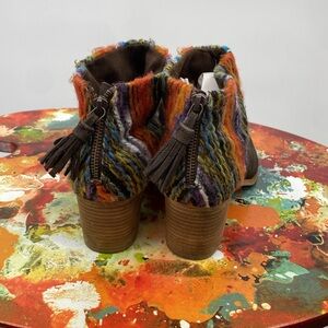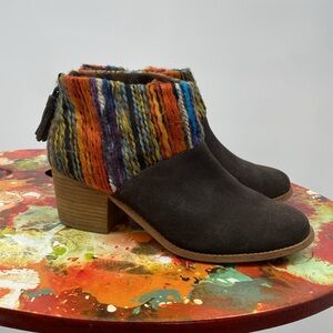 Toms Leila Sweater Knit Ankle Boots Womens Sz 10 Brown Suede Textile Block Heels. Zip Closure. Leila Ankle Bootie Brown Suede Multicolor Yarn.