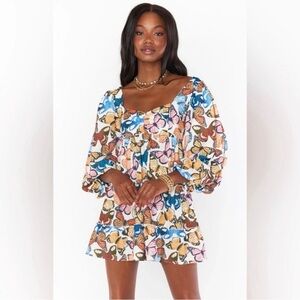 Show Me Your MuMu Butterfly Print Dress with Bell Sleeves
