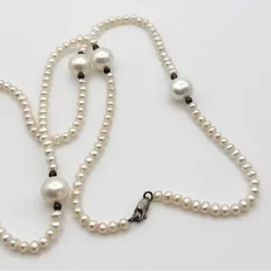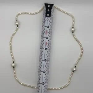 Cultured Pearl Necklace, Silver Bead Accents, 925 Sterling Silver Clasp, Wearable Gift for Her Gift for Mom Gift for Wife, Mothers Day