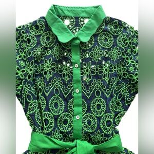 GRETCHEN SCOTT LITTLE BO PEEP MIDI DRESS CONTRAST NWT SIZE LARGE 100% COTTON