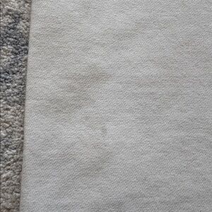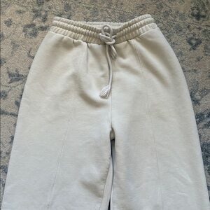 Zara cream sweatpants with an elastic waistband and seam down front. Nice, thick material. Very small faint mark on left back leg. Great condition!