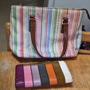 FOSSIL Multicolor Striped Women's Tote Bag Both Are FOSSIL