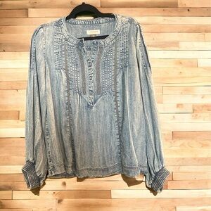 Pilcro and the Letterpress Anthropologie Norah Pin-tucked blouse top. Measurements: PTP 22”, Length 25”. 23B