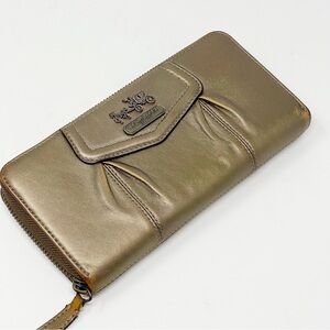 Coach Madison Accordion Zip Clutch Wallet Metallic Leather Card Organizer Large