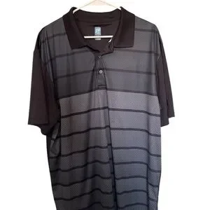 Stylish black and gray polo by PGA Tour. Features a modern striped design. Ideal for casual and sporty looks.