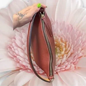 Chic orange leather bag with a sleek design. Features a sturdy handle and signature logo. Ideal for daily use.
