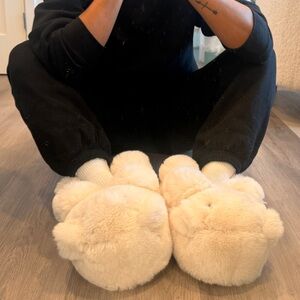 Skims BRAND NEW White Marble Teddy Bear Slippers 8.5