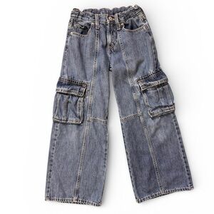 girls cargo jeans, wide leg jeans, baggy jeans, high waisted jeans, size 8 jeans, street style jeans, y2k jeans, cargo denim, adjustable waist jeans, girls fashion, casual denim