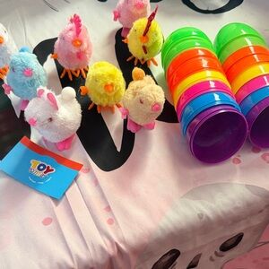 Colorful Plastic Easter Eggs And Easter Wind Up Chicks Nwot