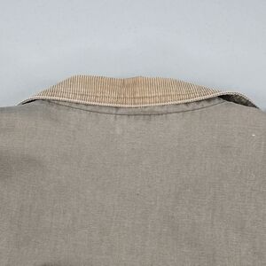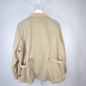 Pre-owned Woolrich women’s barn coat in a classic khaki cotton canvas with a quilted nylon interior and polyester fill for warmth. Features corduroy collar and pocket trim, full zipper with snap placket, interior pockets, and outside flap pockets. A timeless utility silhouette blending outdoor workwear and casual style. In very good used condition. Much nicer condition than your typical vintage coat. Clean and no bad odor. Ships fast from a smoke-free home.