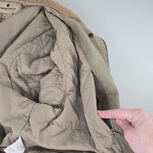 Vintage Woolrich Barn Coat Womens XL Khaki Quilted Lined Cotton Utility Jacket
