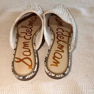 Elegant cream woven mules by Sam Edelman. Stylish and comfortable for any event.