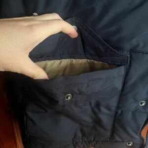 Stay warm and stylish with this blue and black puffer vest. Perfect for layering in cooler weather.