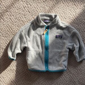 Patagonia Gray Fleece Jacket with Teal Accents Size 6-12 months