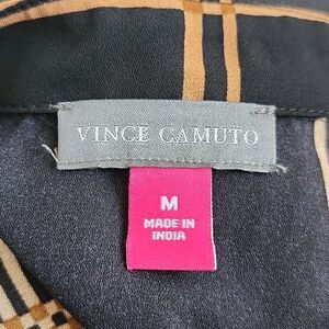 Vince Camuto black & tan plaid ruffle sleeve blouse, v-neck, M