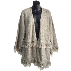 Mud Pie Women's Open Front Fringed Sweater Cardigan Size S/M