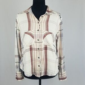 Free People XS Wesley plaid button down shirt