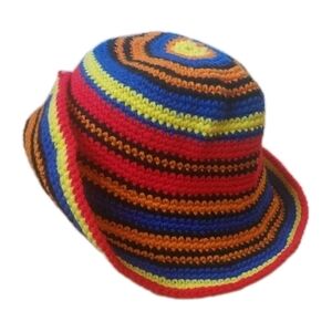 Boho Hippie Crochet Rainbow Striped Bucket Hat Adult One Size Handmade Festival