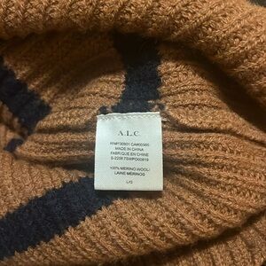 NWOT A.L.C 100% wool Louise brown and black striped mock neck sweater Large new