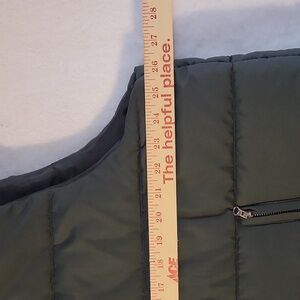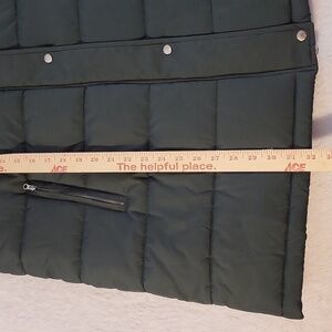Cozy quilted puffer vest in forest green. This is a nice, heavyweight vest. Features a draw string hood, front zip closure, and side zip pockets. Perfect layering piece for cool weather. Excellent like new condition.