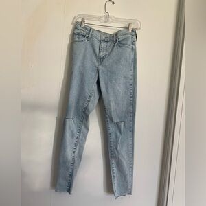Levi's skinny jeans in light blue. Perfect for everyday wear. Offers a sleek and modern look. 25” inseam. Like new