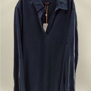 Casual oversized shirt dress with collar and partial button placket. Long sleeves with relaxed fit. Perfect for layering or wearing as a standalone piece.