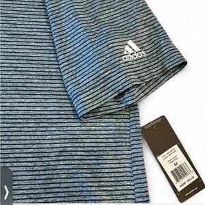 Adidas Golf blue and gray striped polo shirt. Brand new with tags (retails $65) Men’s size medium, pit to pit measures approximately 21 inches.
