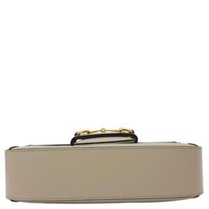 GUCCI Horsebit 1955 small shoulder bag in beige GG Supreme canvas, accented with signature horsebit hardware. Classic and compact, blending heritage design with everyday elegance.