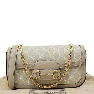 Gucci Horsebit 1955 Small GG Supreme Canvas Shoulder Bag Beige 735178