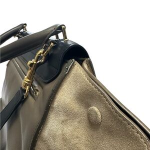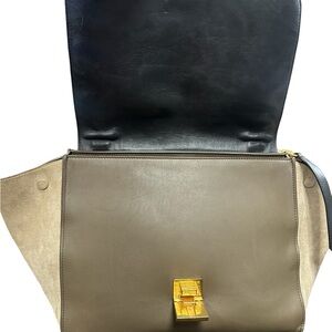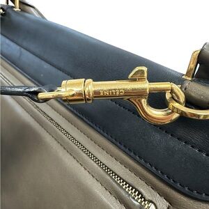 This elegant CELINE features a sophisticated tro-color design, with both suede and leather. Perfect for any occasion or as a work bag! Its sleek style and versatile neutral colors make it a must-have accessory.