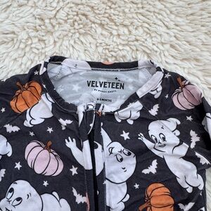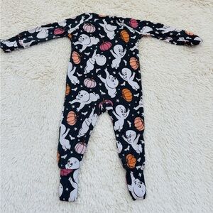 Charming one piece with ghost and pumpkin design!Soft and comfortable bamboo fabric that is comfy as can be! 0-3 months