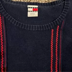 Stay stylish and comfortable with the Tommy Hilfiger Women's Colorblock Sweater. Featuring a bold navy, red, and white design, this sweater is perfect for any casual outing. Enjoy the quality and style of Tommy Hilfiger in every wear.