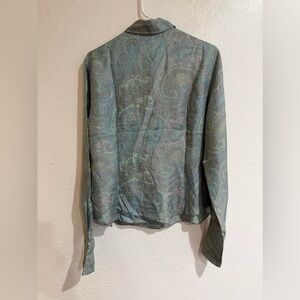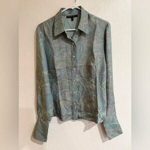 Lafayette 148 New York Green Women's Paisley Print 100% Silk Blouse size 12